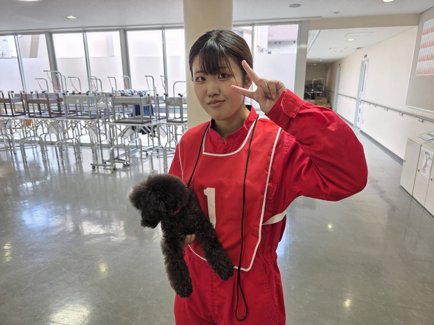 ワンちゃんと息を合わせて普段の実習の成果を見せます✨