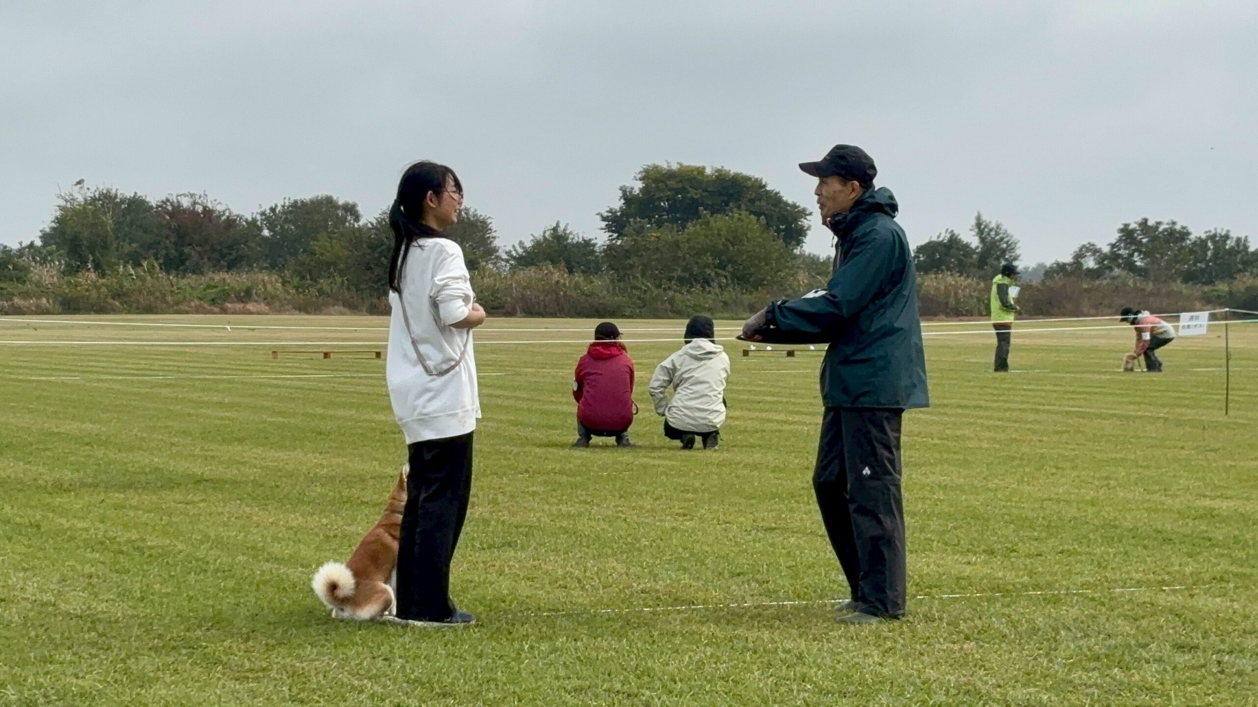 パートナーのワンちゃんと座れや伏せ、待てなど色々な項目に挑みます👍